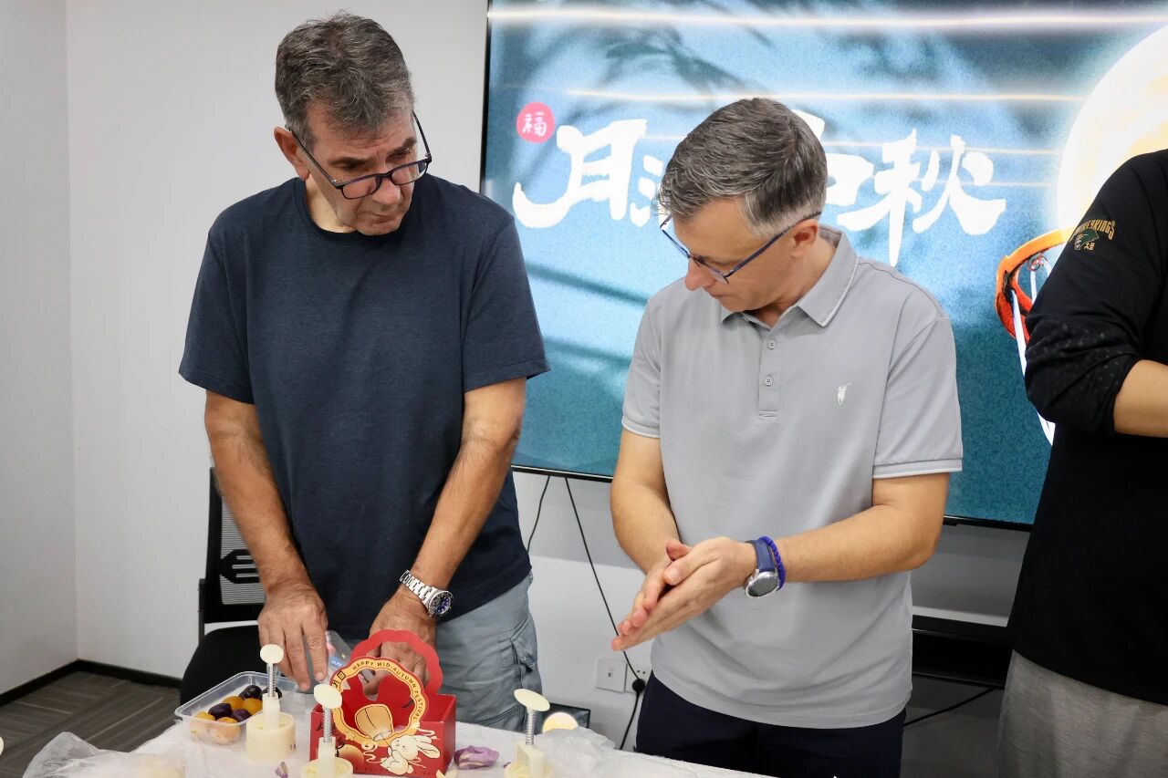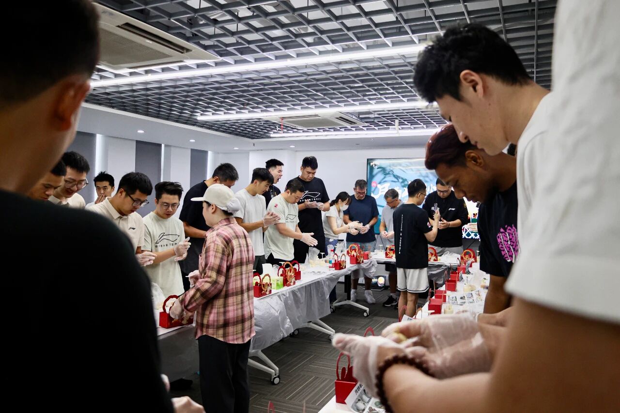 此外,在中秋佳节来临之际,南京同曦篮球俱乐部还特别组织了一场温馨的中秋主题活动。教练和球员们暂时从紧张的训练中抽身,齐聚一堂亲手制作月饼。