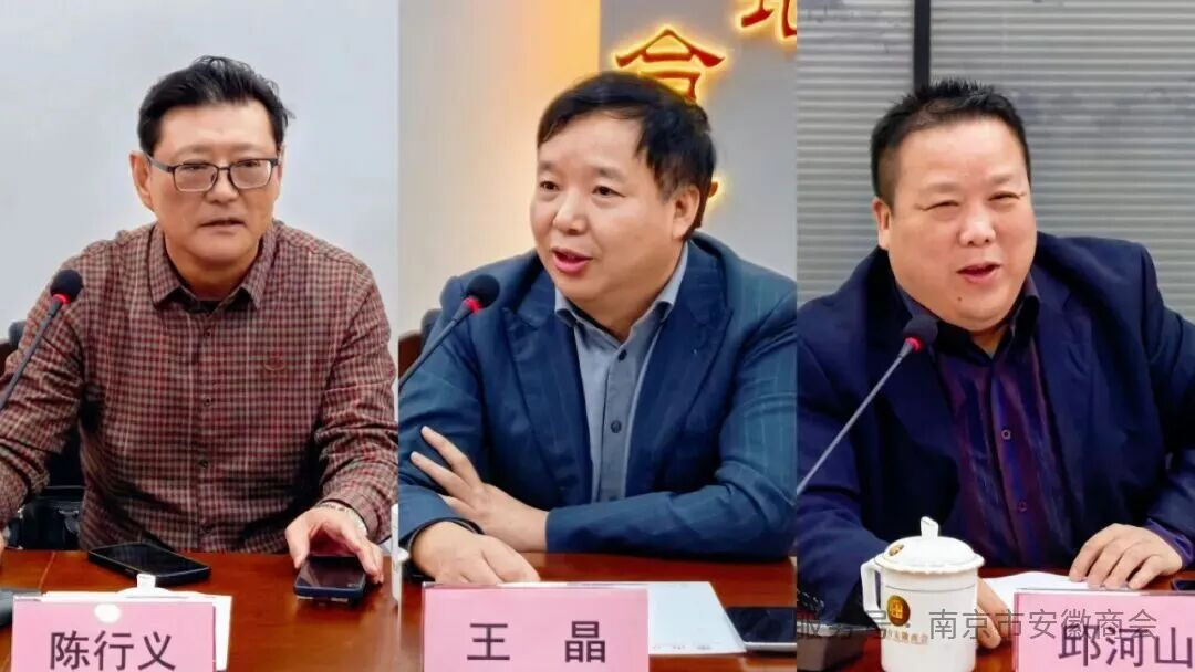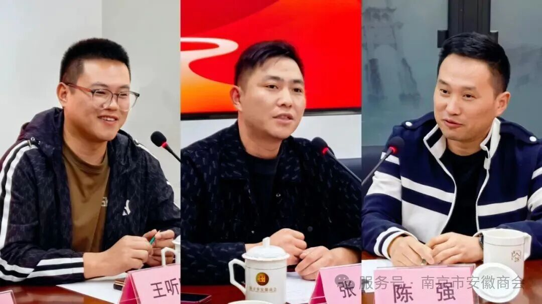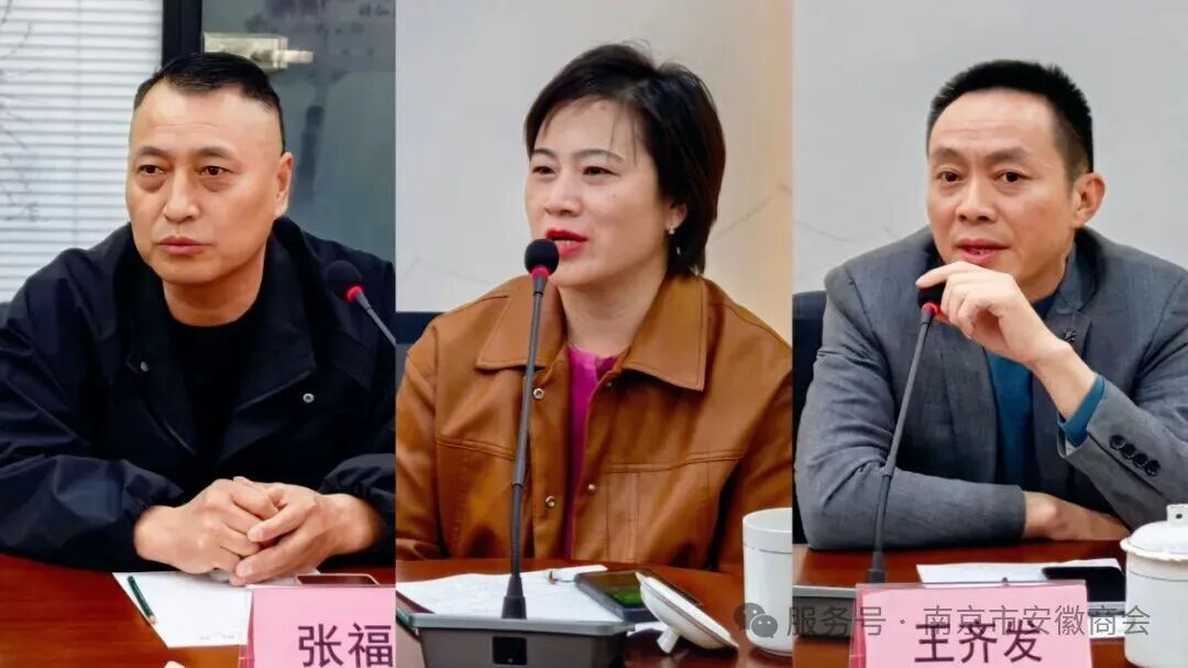 张福生、朱爱梅、王齐发聚焦行业现状与发展进行交流。安徽宣酒集团南京分公司的张福生融入商会后感受到了热情,期待商会越来越好,也希望提升宣酒品牌影响力;朱爱梅结合资产管理经验,建议商会建立困难交流机制,助力企业在经济下行期防控风险、活下去;退伍创业的老会员王齐发目前转型做装饰工程与招商对接,现推广宣城旌德县“青山绿水”项目,邀请大家去当地考察,倡导健康发展理念,共促企业与商会发展。