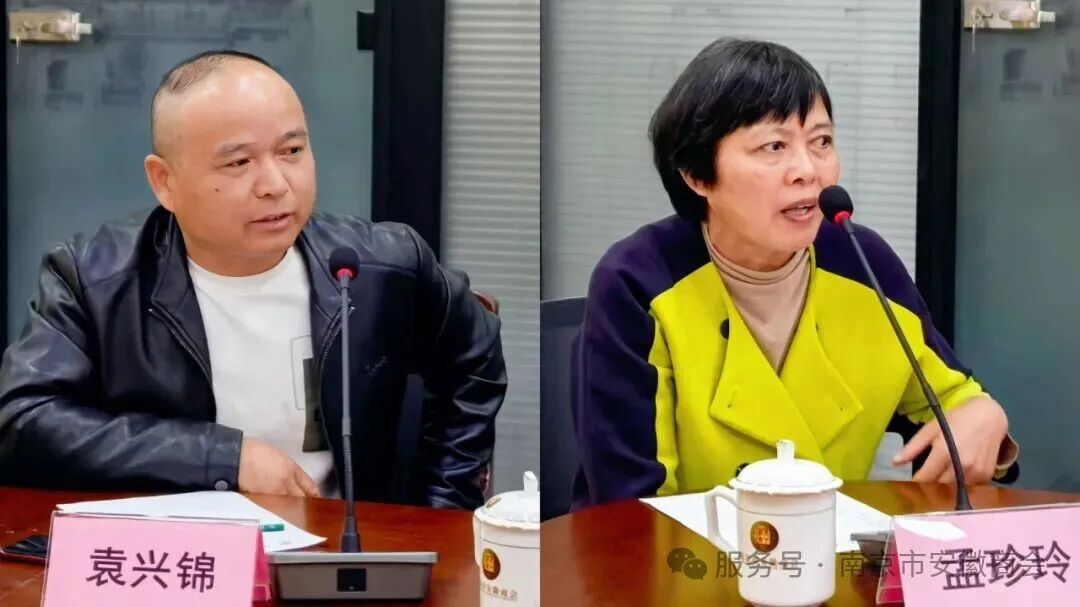 袁兴锦、孟珍玲分享了各自的创业故事与资源优势。首次参会的袁兴锦希望通过商会扩展汽车相关业务、共享资源;证券公司退休的孟珍玲主动提供企业上市咨询服务,建议联动皖苏资源助力会员脱困,共促企业与商会发展。