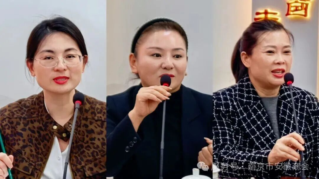 彭红红、夏静、陈敏结合自身领域展开讨论。律师彭红红认为焕然一新的环境令人振奋,期待与商会共同成长。夏静做全屋定制多年从门店转型渠道,虽觉自身能量有限,但愿以热情为商会提供支持。从事网约车运营的陈敏讲述了商会在其遇困时的帮扶经历,表示加入商会就像走进家,感受到商会的学习氛围,认同安徽文化底蕴深厚的特质。