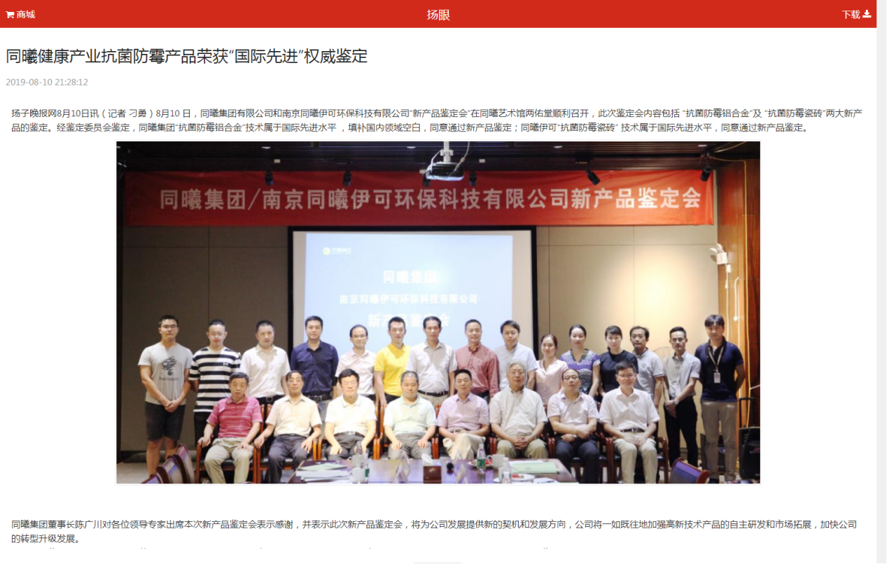 尤其是同曦集团的“抗菌防霉铝合金”与“抗菌防霉瓷砖”技术经江苏省工信厅及国内专家认定为国际先进水平,填补了国内市场空白。