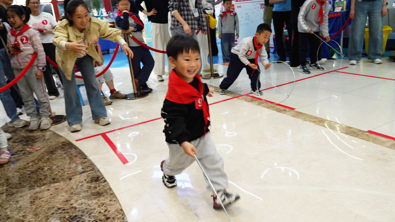 4月19日下午,一场别开生面的“宙光复古运动会”在宙光家庭与儿童抗菌产品馆(同曦万尚城二楼)欢乐开启。数十组家庭佩戴红领巾、手持集章卡,在踢毽子、推铁圈等经典游戏中,完成了一场跨越代际的童年对话。