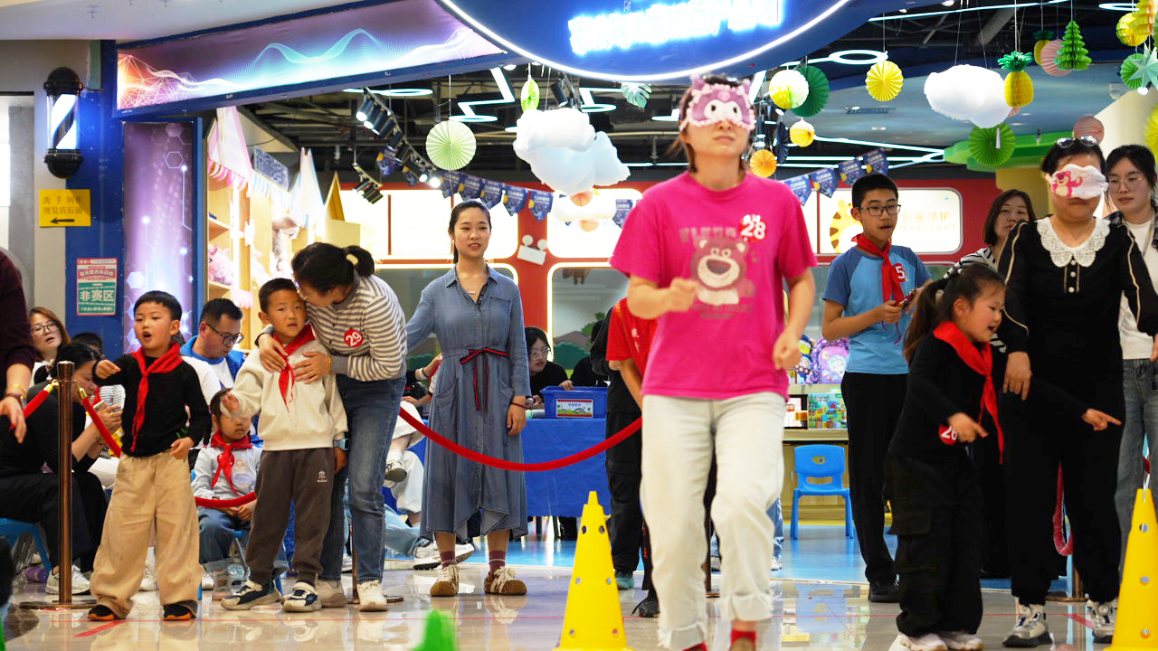 信任大挑战:家长蒙眼,孩子指挥,绕过障碍、摸到宙光产品再返回,亲子默契瞬间拉满。