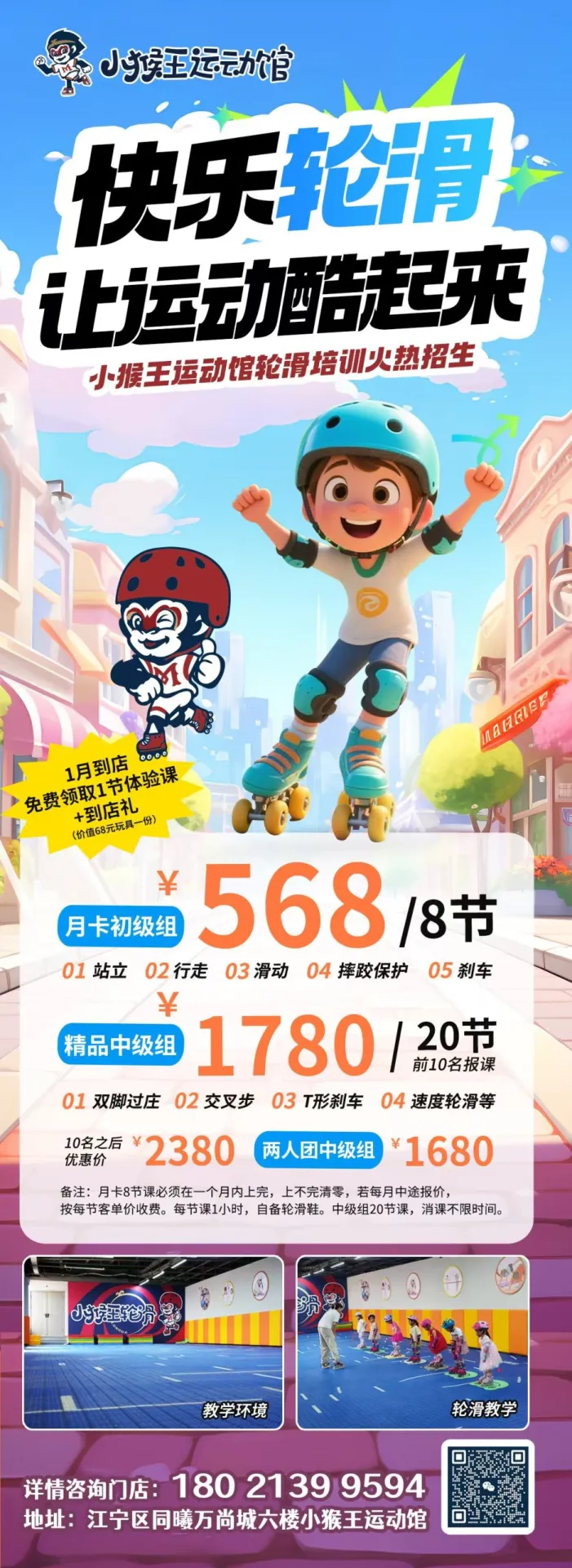 月卡初级组,568元8节轮滑课包会滑!