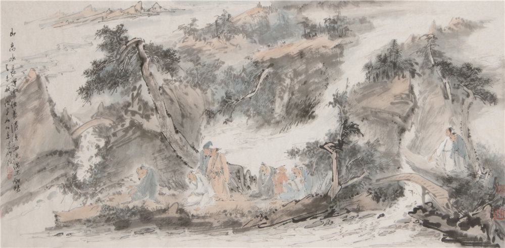 春山雅集图 68×136cm