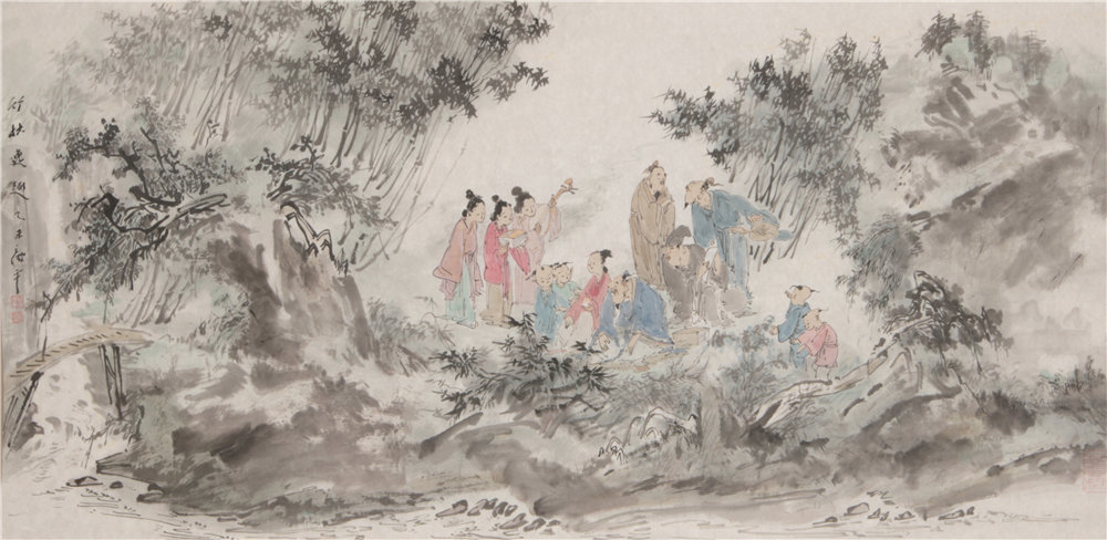 竹林逸趣 68×138cm