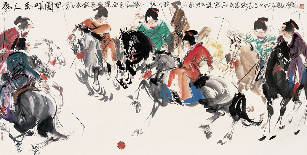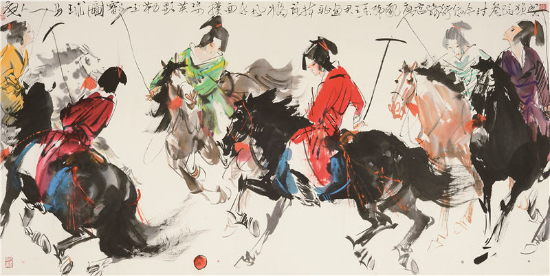 唐人马球图 136×68cm