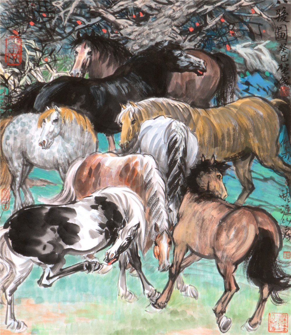 八骏图 53×45cm