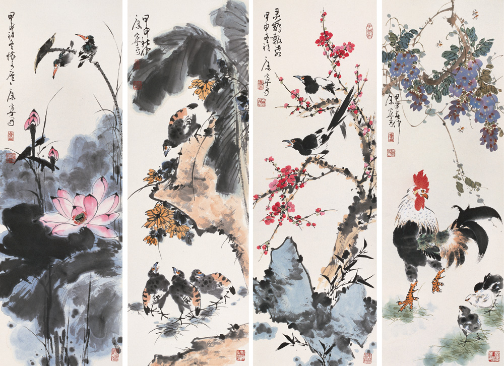 康宁 2004年作 花鸟 四屏