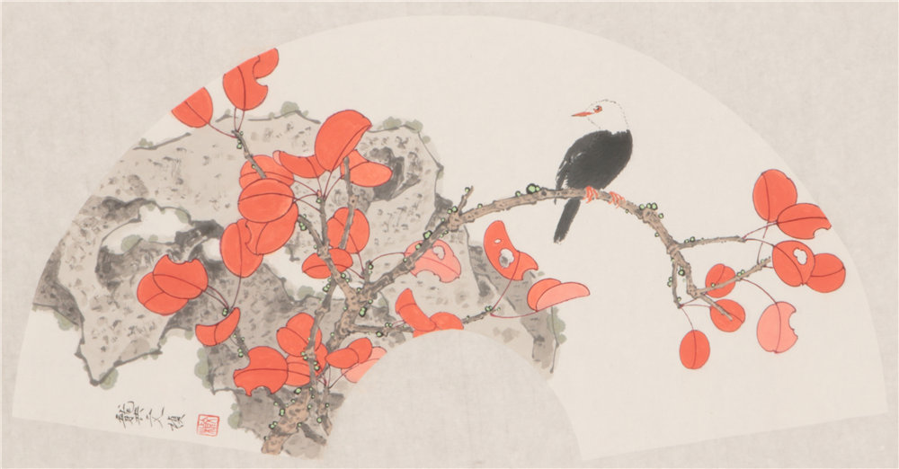 红叶小鸟扇面 R=20cm