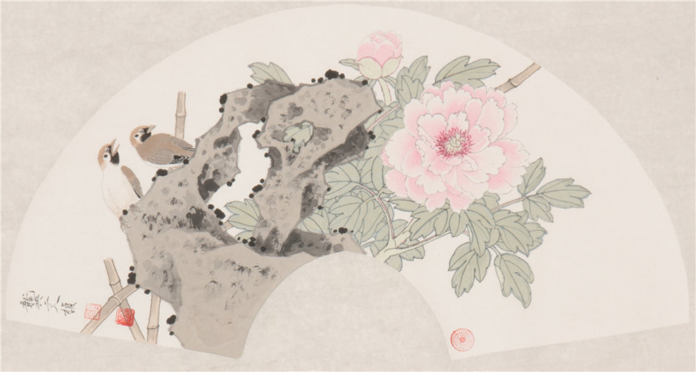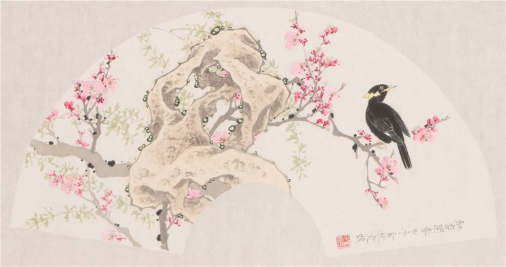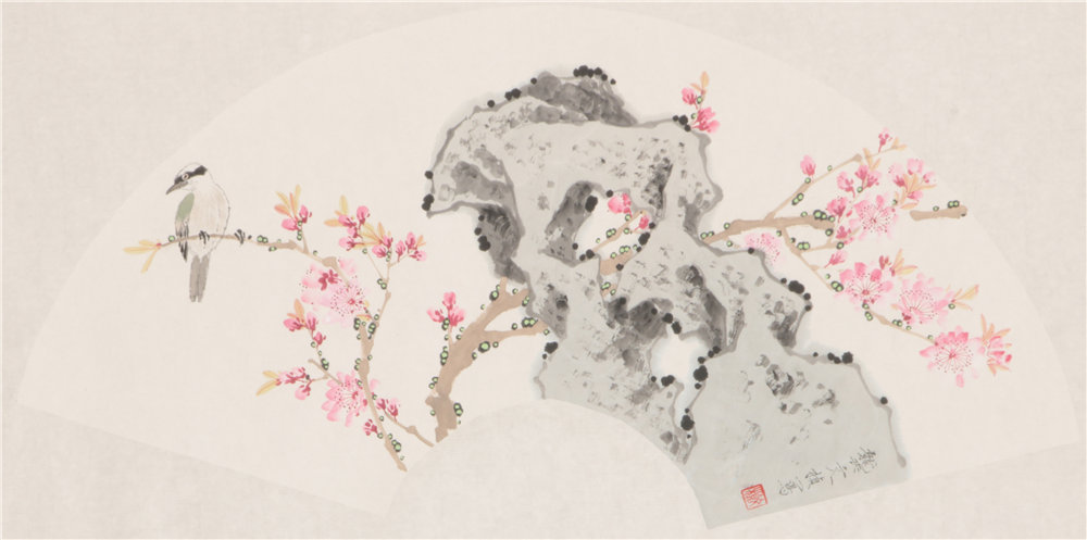 桃花小鸟扇面 R=34cm