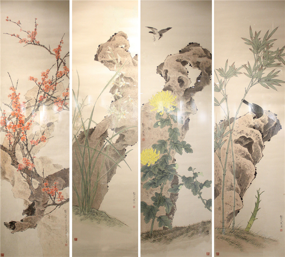 摇兰竹菊四条屏 150×41cm×4