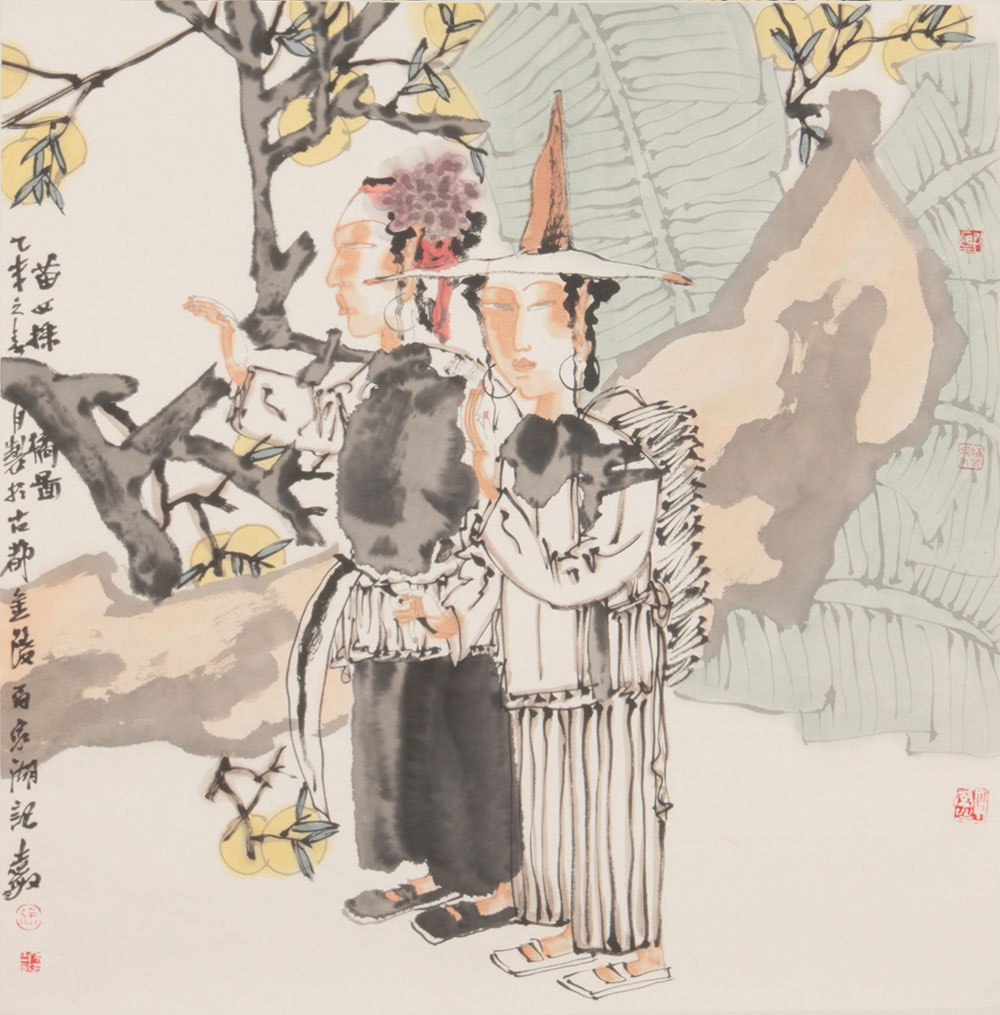 苗女采橘图 69×69cm