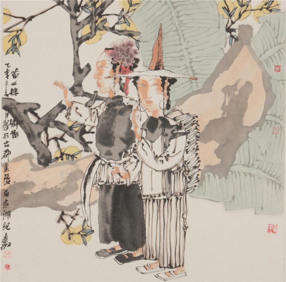 苗女采橘图 69*69cm