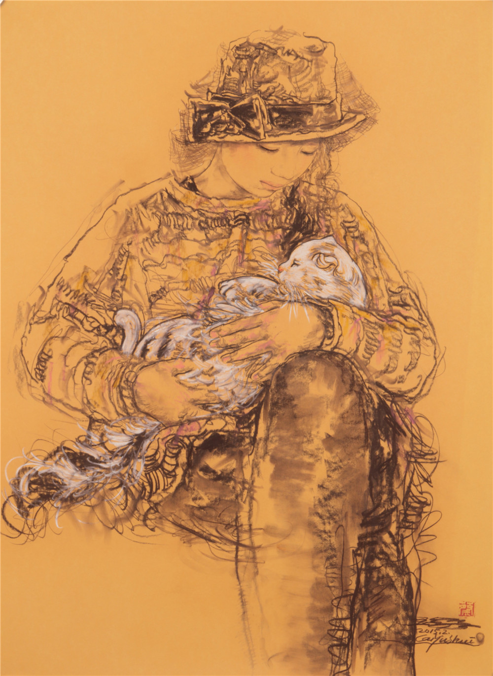 丹妮与猫 100×70cm