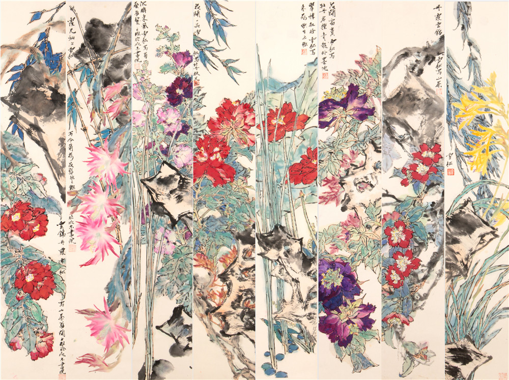 花鸟八条屏 136×22.6cm×8