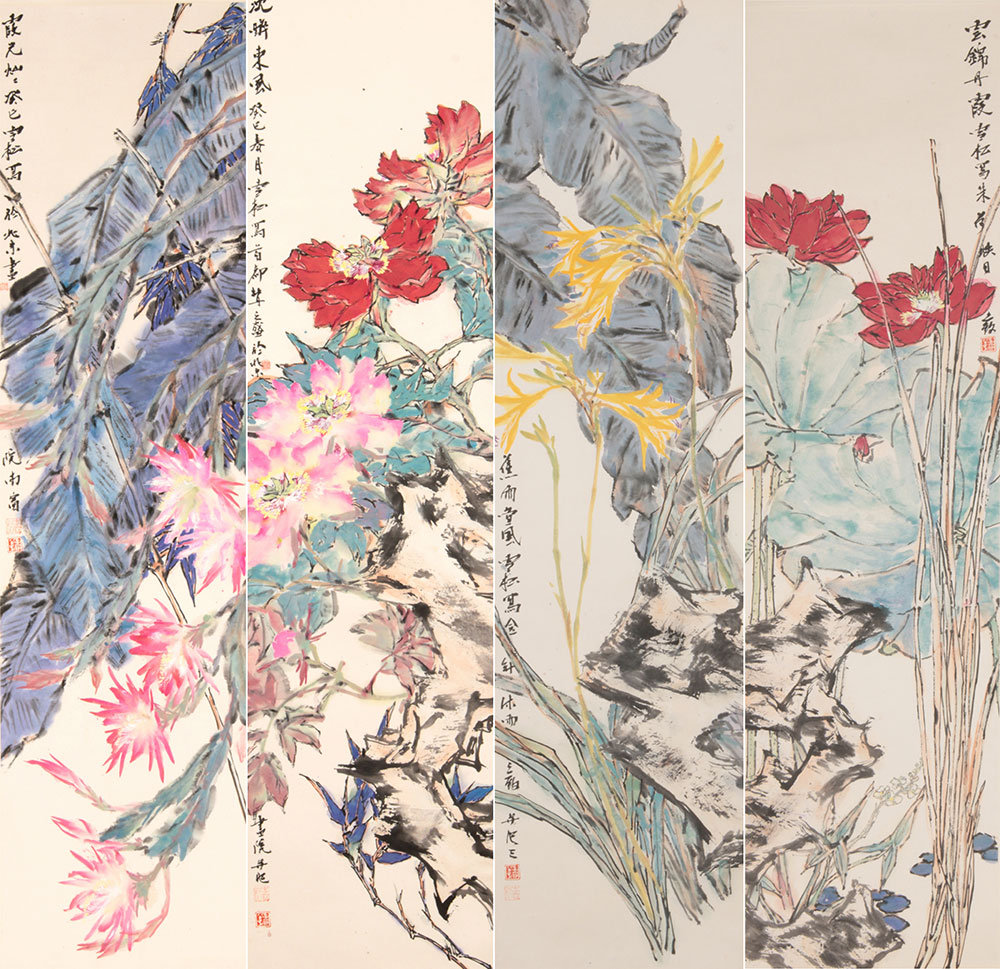 花鸟四条屏 136×34cm×4