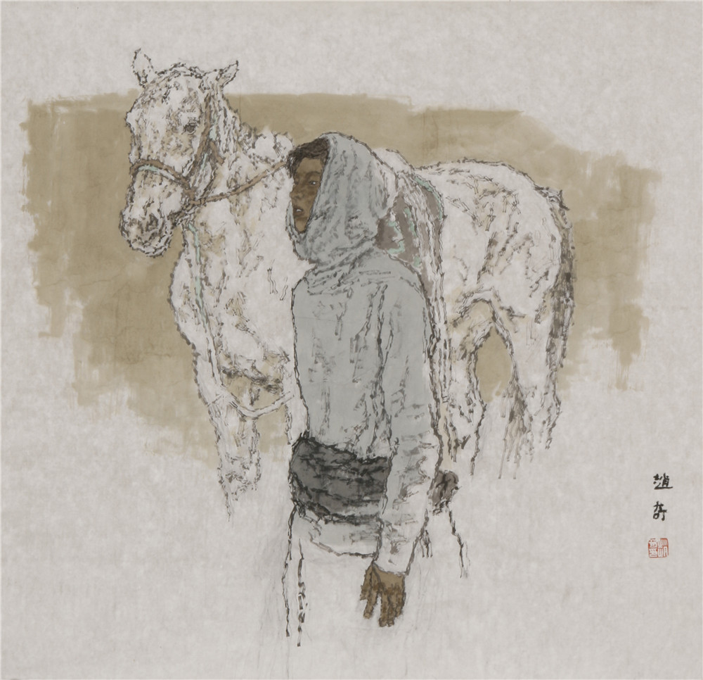 女孩与马 68×68cm